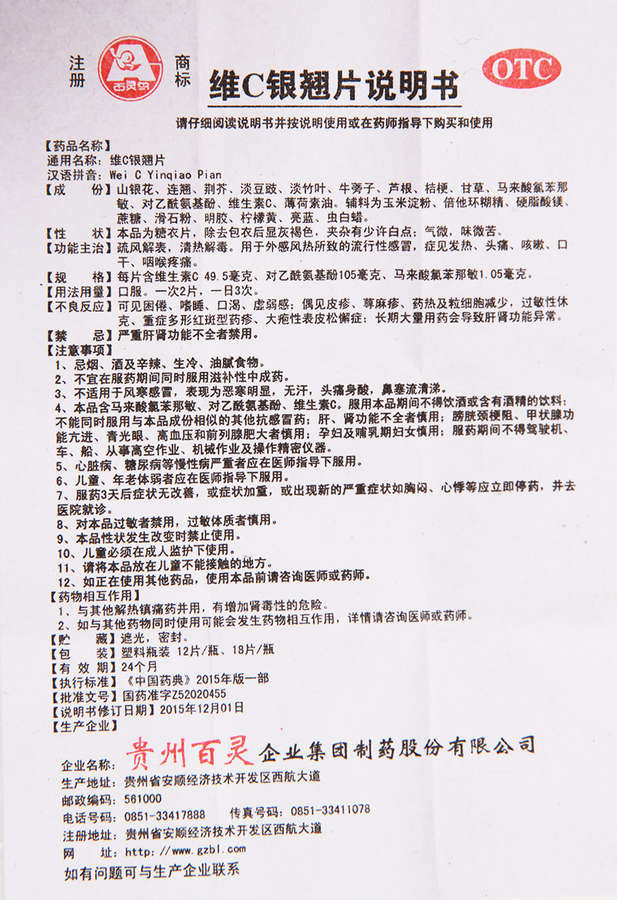 ● 名稱:貴州百靈維C銀翹片