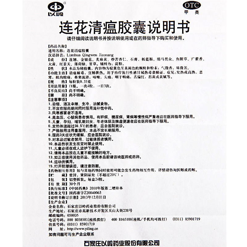 ● 名稱:以嶺連花清瘟膠囊